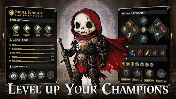 Equip and enhance your champions; unlock multiple artifacts to reveal new appearances and stories.