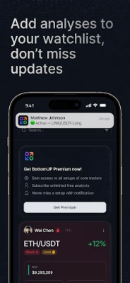 bottomUP is a social media application that brings crypto influencers and small investors together. With this application, users are able to receive token trading ideas, news and blockchain activities. The app has monthly and yearly subscription plan. Once a user applies this subscription; token trading ideas, breaking news and other informative features will be unlocked. App also provides user selecting influencer by idea succession on any token, showing how many users follow a specific influencer and previous token ideas shared by the influencer.