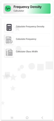 The Frequency Density Calculator helps you compute key statistical values in grouped data. By entering two known variables, you can quickly calculate the missing one: