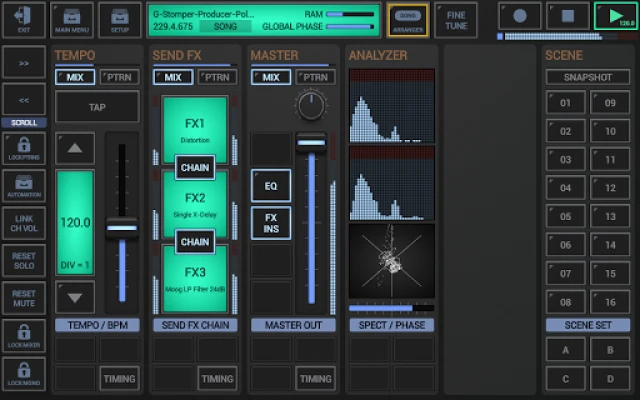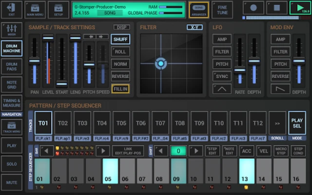 G-Stomper Producer is a fast and flexible Music Sequencer and Digital Audio Workstation, designed for use in live performance as well as for production. It comes with a powerful Drum Sampler, a polyphonic and multi-timbral Virtual Analog Performance Synthesizer (VA-Beast), Sounds, Effects, Sequencers, Pads and Keyboards, a graphical Multi-Track Song Arranger, and many other creative features that help you to create your own music.