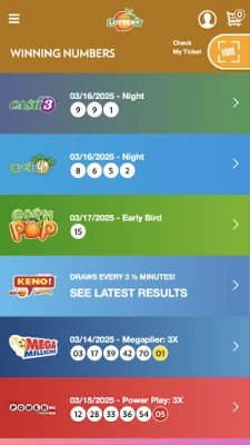 • Purchase KENO!, Fantasy 5, Powerball, Cash 3, Cash 4, CashPop, Cash4life and Mega Millions tickets