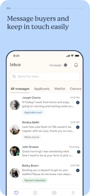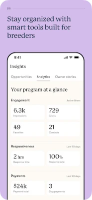 Manage your program from anywhere—list puppies and access our nationwide network of serious buyers actively searching to add a puppy to their home. Manage your applicants, message buyers, accept secure payments, and keep your records all in one place with our app built just for breeders.