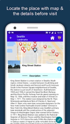 Apart from this, Seattle Travel & Explore guides you Why, When and How to visit various places in Seattle with precise location on the detailed Map. There are two ways to explore this app - Category view and EduBank favorite places view. Pin your destinations and get the routes on the Map. Not only this, you can see exactly how the places look like with Street View integrated in this app. The app also has a feature to Rate and write Review/Experience regarding entity(s) through Login. Your Travel experience and rating will help the user community.