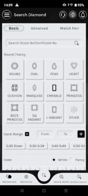 2.Match Stone Search - Select criteria for couple diamonds and get list of pair diamonds.