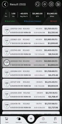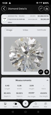 6.Diamond List and Details - Check diamond details in 3 different views, access diamond image, video and certificates. Sort diamonds as per your preference and share diamonds.
