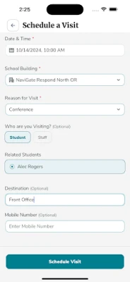 Convenient Parent/Guardian Access: Parents can schedule visits, student late check-ins, and early check-outs for their children.